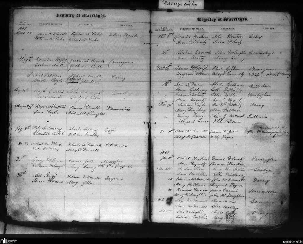 Moville; County of Donegal; Diocese of Derry. Marriages, Apr. 1865 to Feb. 1866