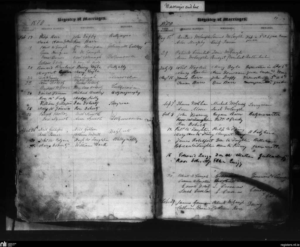 Moville; County of Donegal; Diocese of Derry. Marriages, Feb. 1870 to Oct. 1870