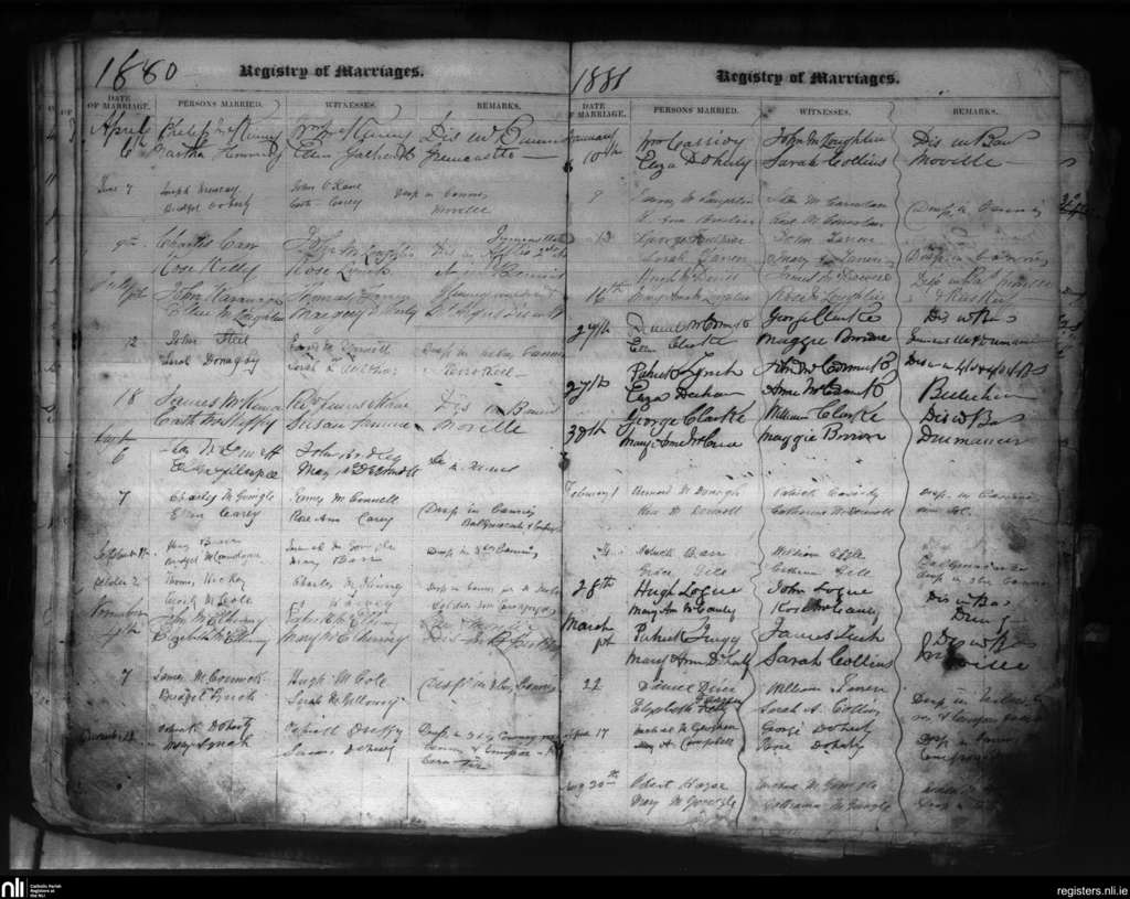 Moville; County of Donegal; Diocese of Derry. Marriages, Apr. 1880 to Aug. 1881