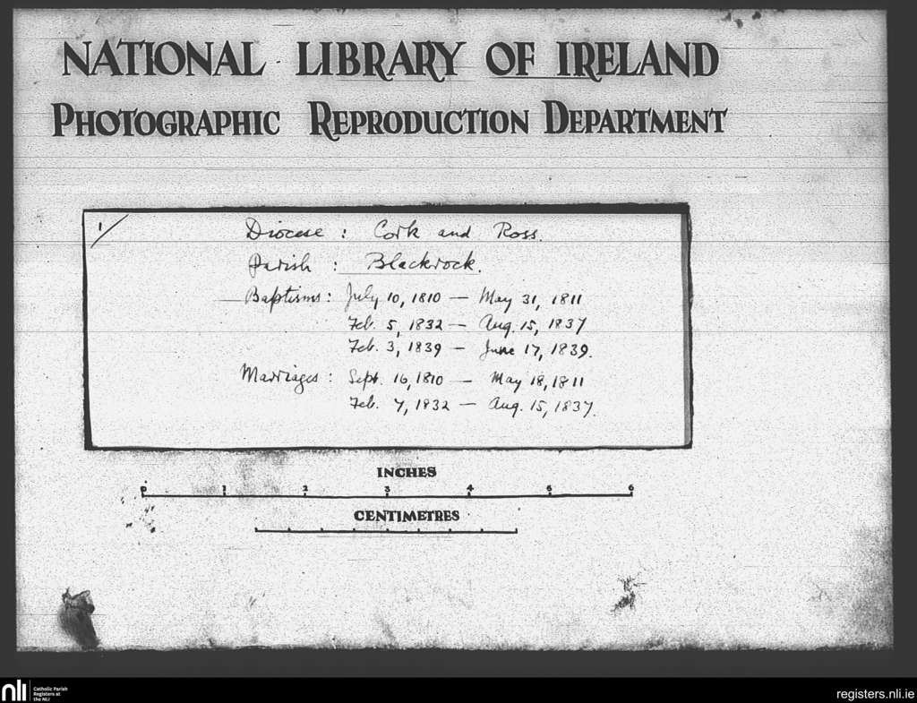 Blackrock, Cork city; County of Cork; Diocese of Cork and Ross. Baptisms, Marriages