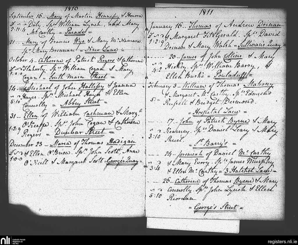 Blackrock, Cork city; County of Cork; Diocese of Cork and Ross. Baptisms, Sep. 1810 to Feb. 1811