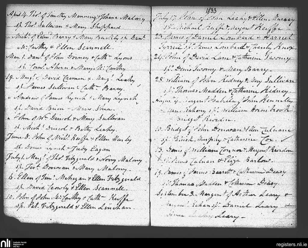 Blackrock, Cork city; County of Cork; Diocese of Cork and Ross. Baptisms, Apr. 1833 to Sep. 1833