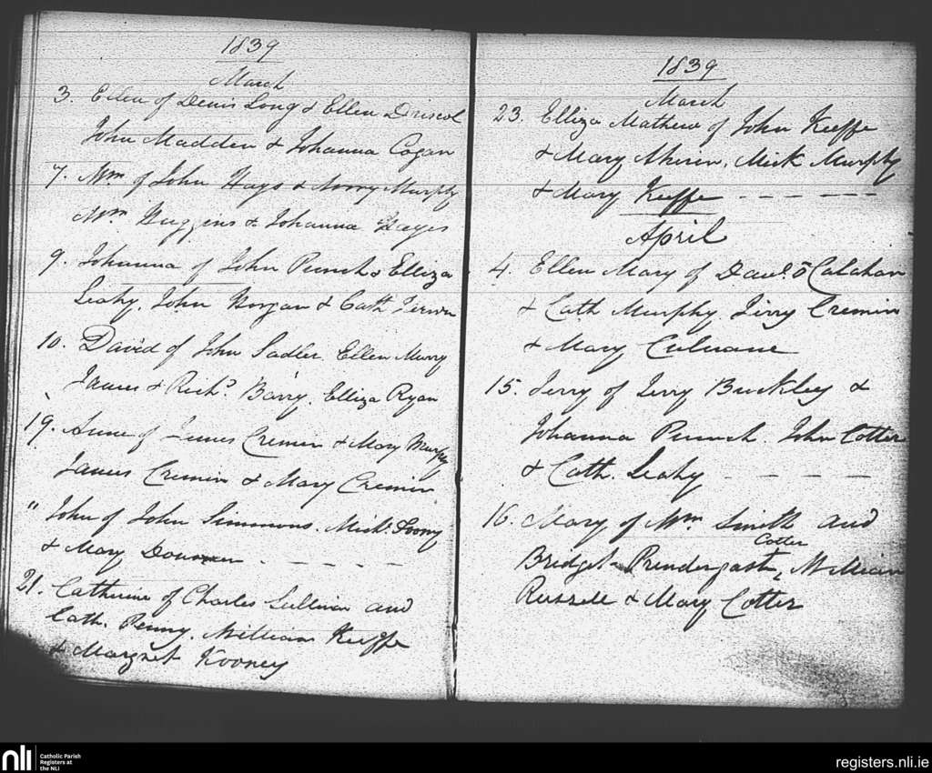 Blackrock, Cork city; County of Cork; Diocese of Cork and Ross. Baptisms, Mar. 1839 to Apr. 1839
