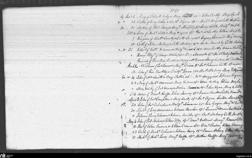 Blackrock, Cork city; County of Cork; Diocese of Cork and Ross. Baptisms, Jan. 1841 to May 1841