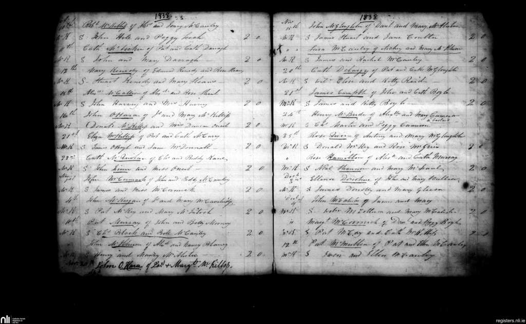 Layde; County of Antrim; Diocese of Down and Connor. Baptisms, Oct. 1838 to Dec. 1838