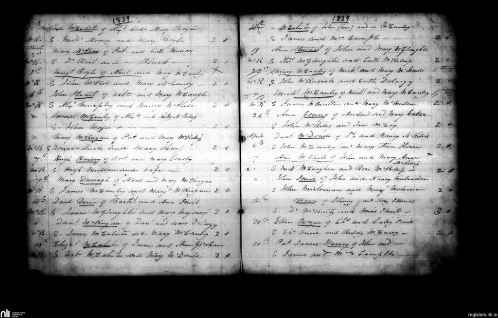 Layde; County of Antrim; Diocese of Down and Connor. Baptisms, Feb. 1839 to Apr. 1839