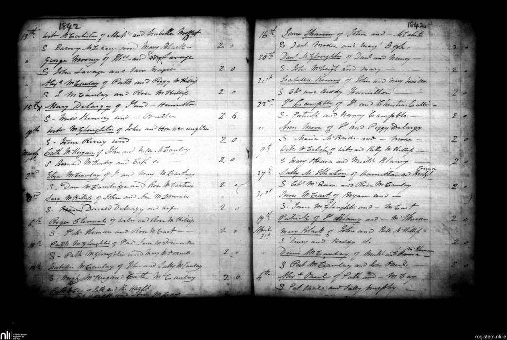 Layde; County of Antrim; Diocese of Down and Connor. Baptisms, Feb. 1842 to Apr. 1842