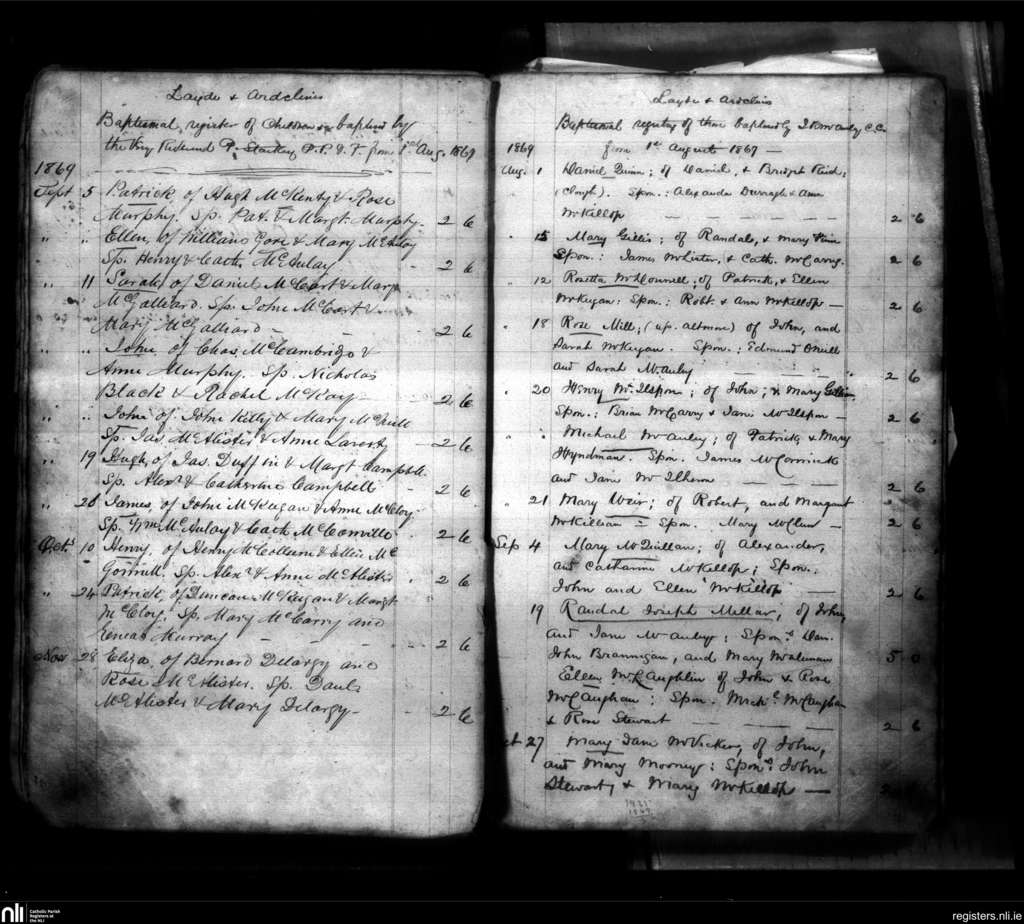 Layde; County of Antrim; Diocese of Down and Connor. Baptisms, Aug. 1869 to Nov. 1869