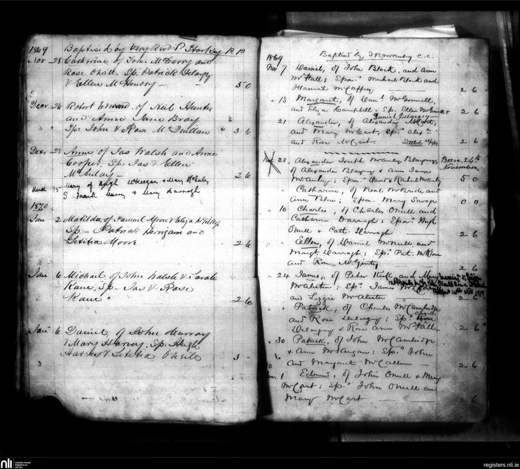 Layde; County of Antrim; Diocese of Down and Connor. Baptisms, Nov. 1869 to Jan. 1870