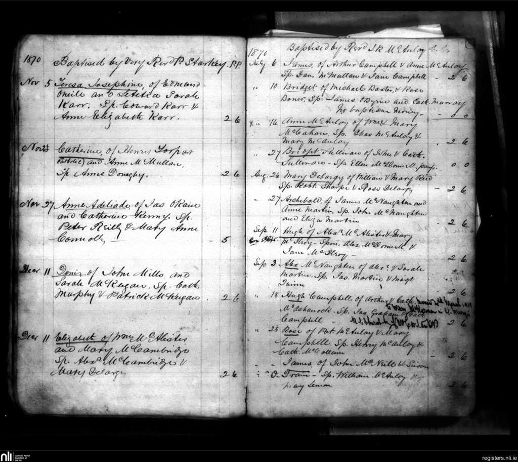 Layde; County of Antrim; Diocese of Down and Connor. Baptisms, July 1870 to Dec. 1870