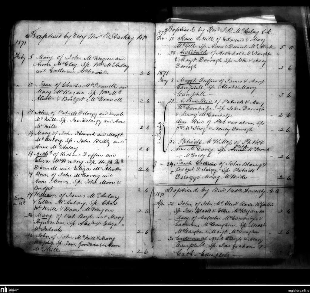 Layde; County of Antrim; Diocese of Down and Connor. Baptisms, Dec. 1870 to Apr. 1871