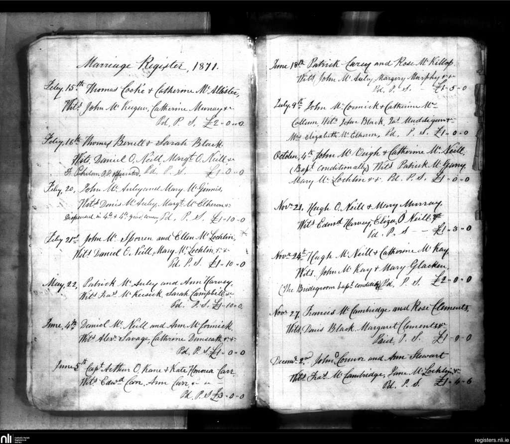 Layde; County of Antrim; Diocese of Down and Connor. Marriages, Feb. 1871 to Dec. 1871