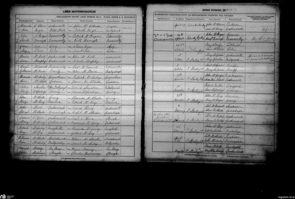 Layde; County of Antrim; Diocese of Down and Connor. Marriages, Apr. 1872 to May 1873