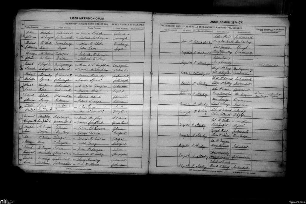 Layde; County of Antrim; Diocese of Down and Connor. Marriages, June 1874 to Feb. 1875