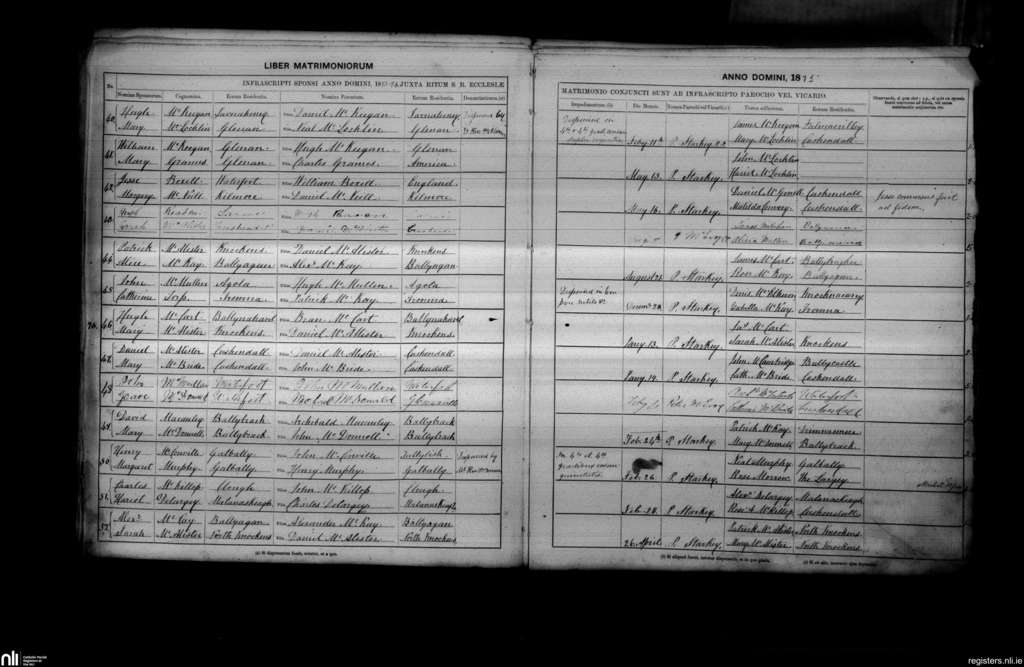 Layde; County of Antrim; Diocese of Down and Connor. Marriages, Feb. 1875 to Apr. 1876