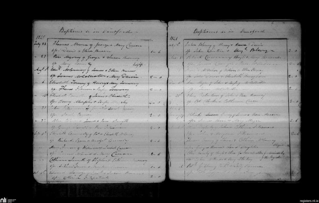 Dunsford; County of Down; Diocese of Down and Connor. Baptisms, July 1848 to Mar. 1849