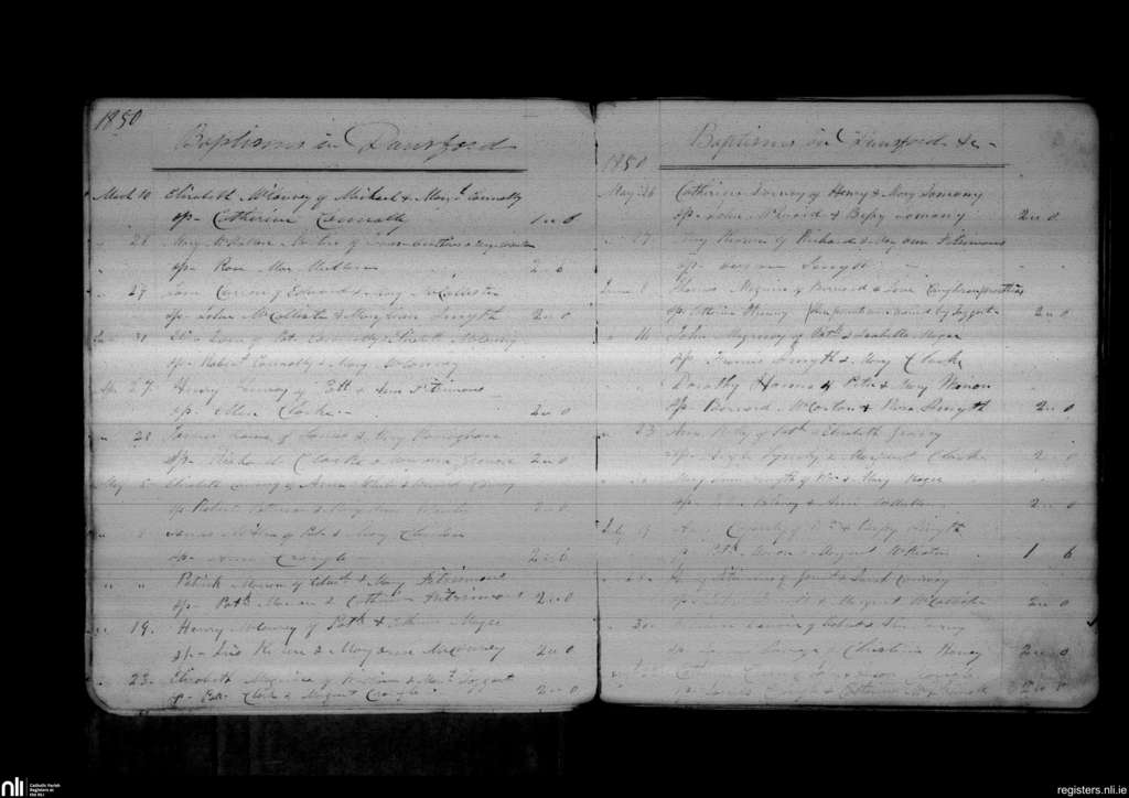 Dunsford; County of Down; Diocese of Down and Connor. Baptisms, Mar. 1850 to Aug. 1850