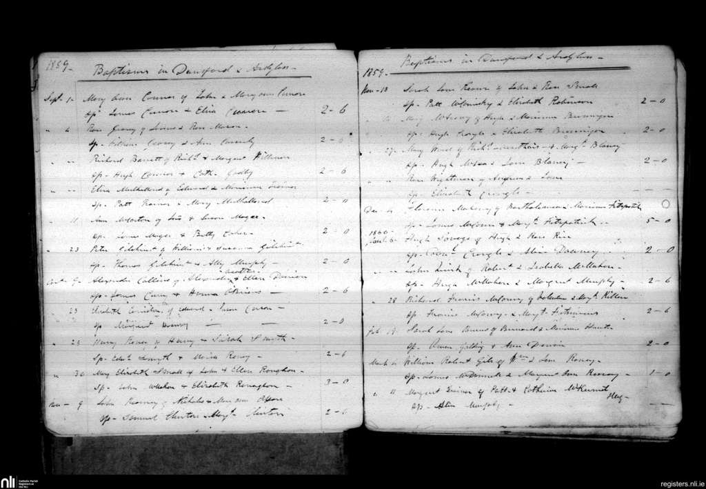 Dunsford; County of Down; Diocese of Down and Connor. Baptisms, Sep. 1859 to Mar. 1860