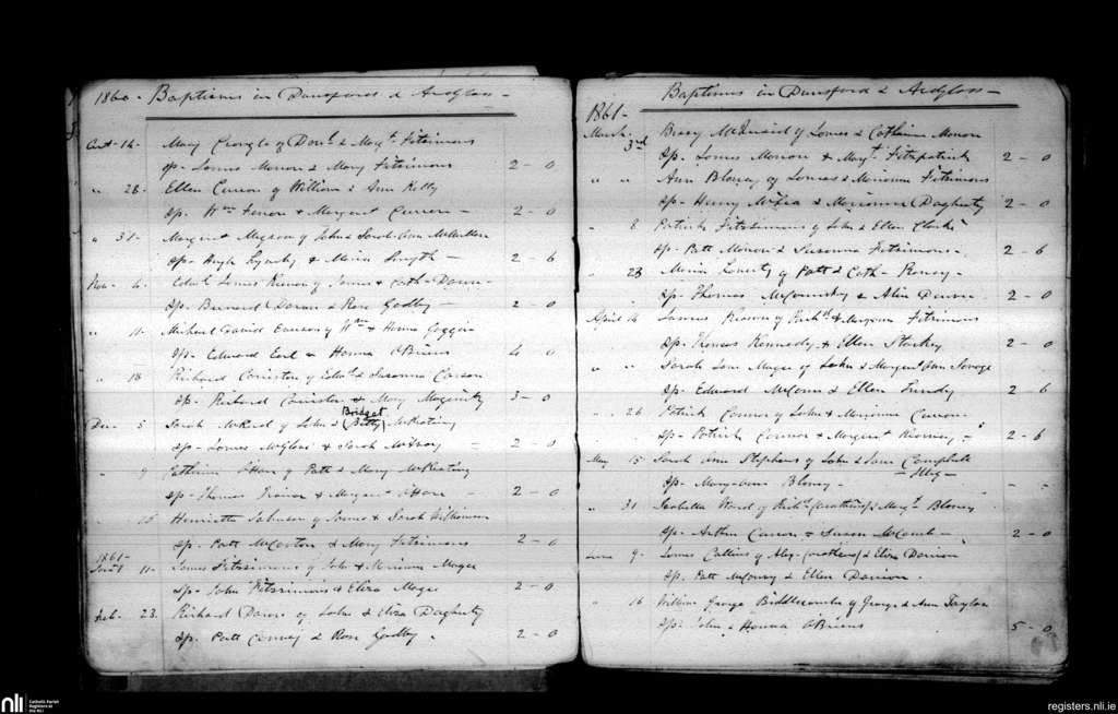 Dunsford; County of Down; Diocese of Down and Connor. Baptisms, Oct. 1860 to June 1861