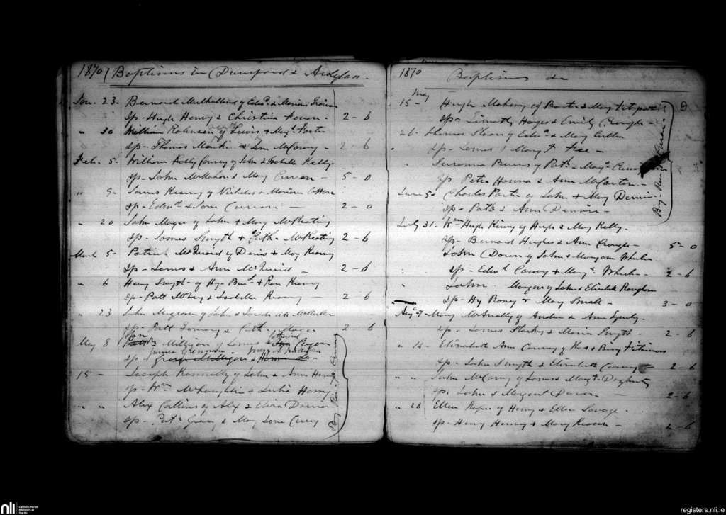 Dunsford; County of Down; Diocese of Down and Connor. Baptisms, Jan. 1870 to Aug. 1870