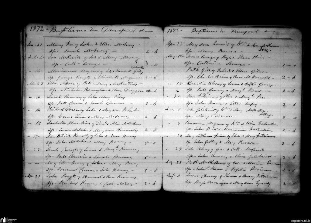 Dunsford; County of Down; Diocese of Down and Connor. Baptisms, Jan. 1872 to Aug. 1872