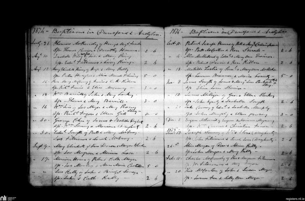 Dunsford; County of Down; Diocese of Down and Connor. Baptisms, July 1874 to Feb. 1875