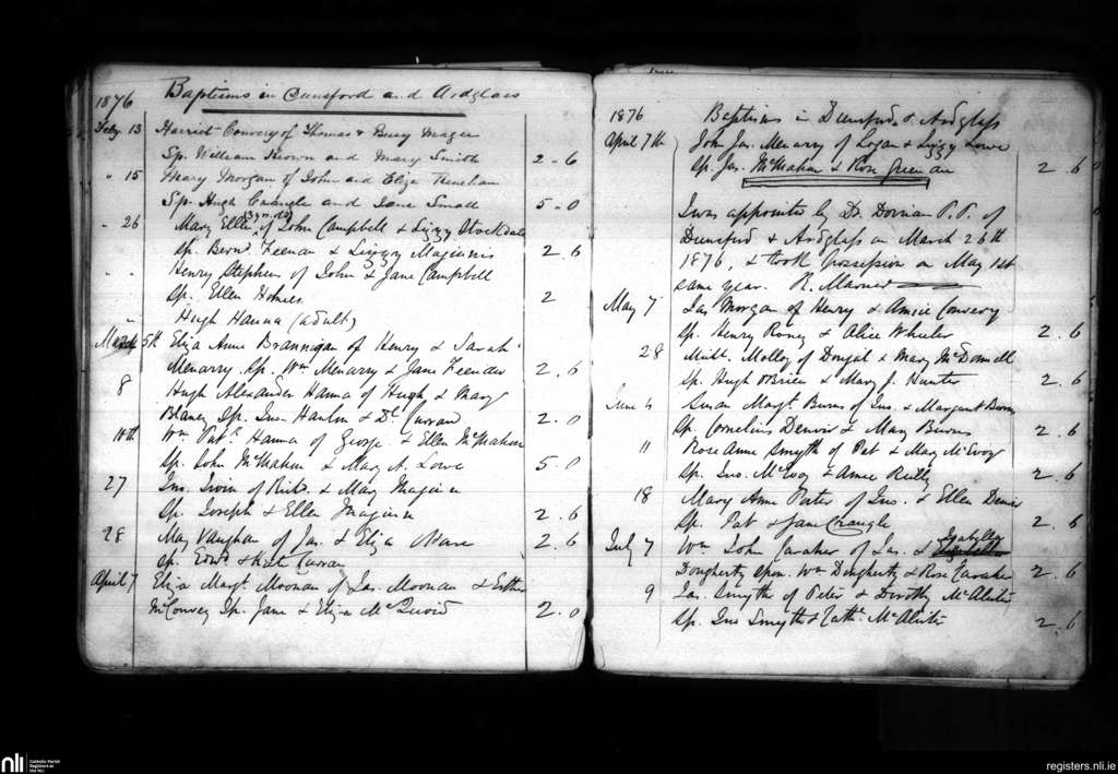 Dunsford; County of Down; Diocese of Down and Connor. Baptisms, Feb. 1876 to July 1876
