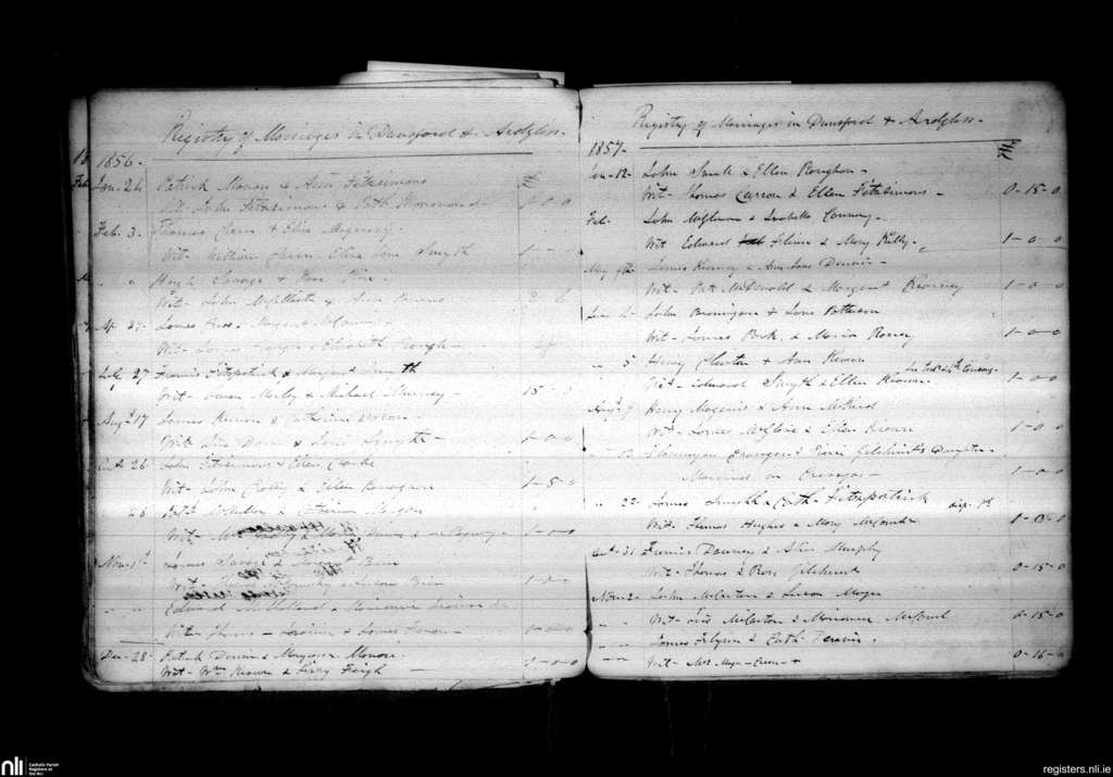 Dunsford; County of Down; Diocese of Down and Connor. Marriages, Jan. 1856 to Nov. 1857
