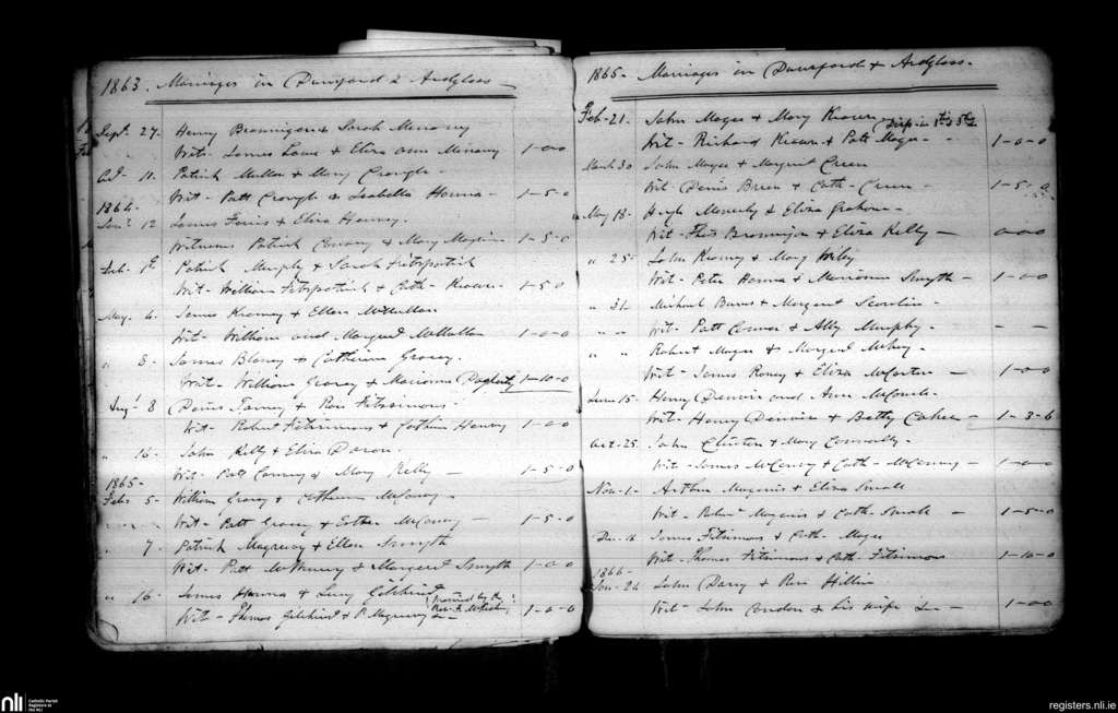 Dunsford; County of Down; Diocese of Down and Connor. Marriages, Sep. 1863 to Jan. 1866