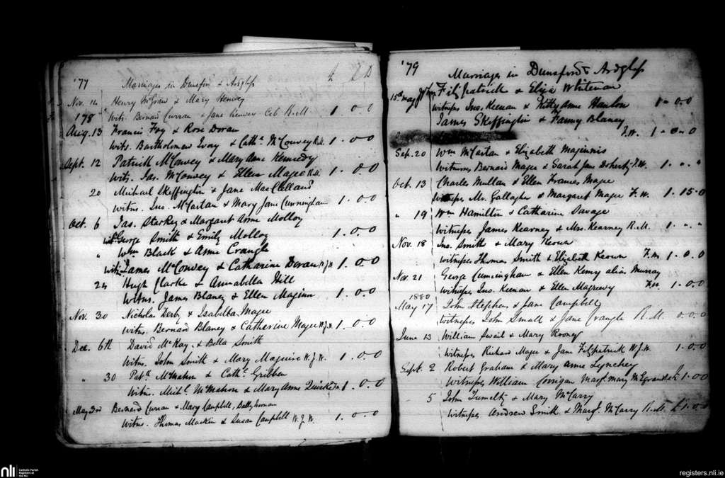 Dunsford; County of Down; Diocese of Down and Connor. Marriages, Nov. 1877 to Sep. 1880