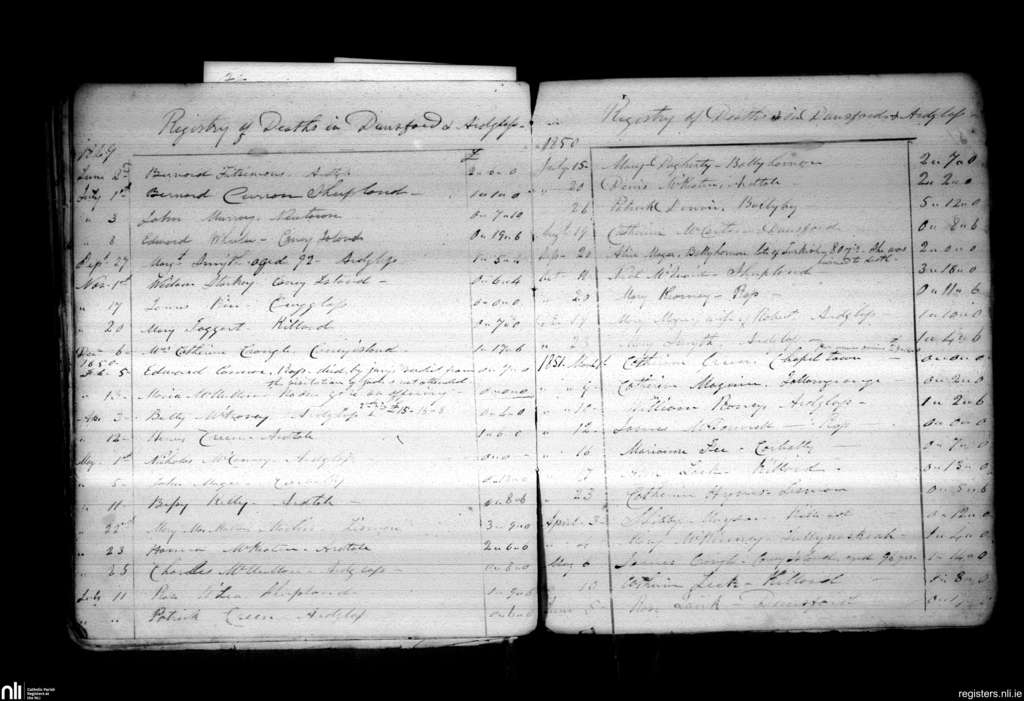 Dunsford; County of Down; Diocese of Down and Connor. Deaths, June 1849 to June 1851