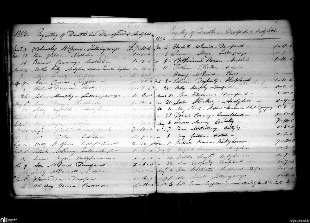 Dunsford; County of Down; Diocese of Down and Connor. Deaths, Jan. 1853 to Sep. 1854