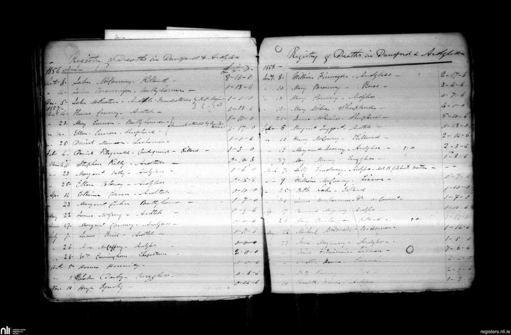 Dunsford; County of Down; Diocese of Down and Connor. Deaths, Oct. 1856 to June 1858