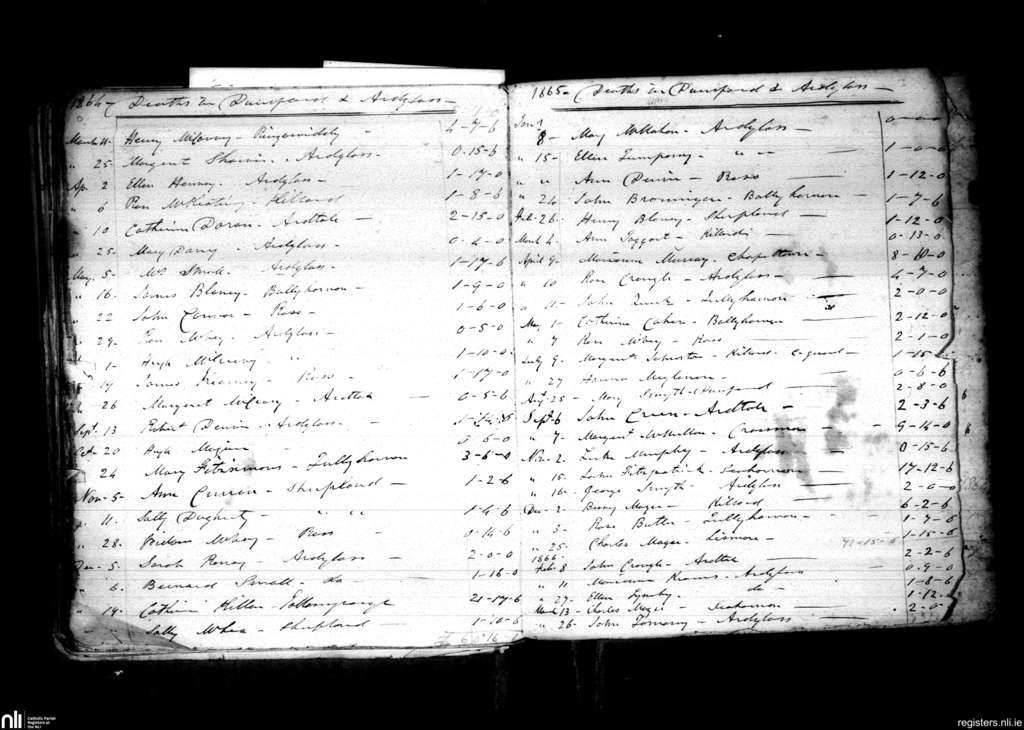 Dunsford; County of Down; Diocese of Down and Connor. Deaths, Mar. 1864 to Mar. 1866