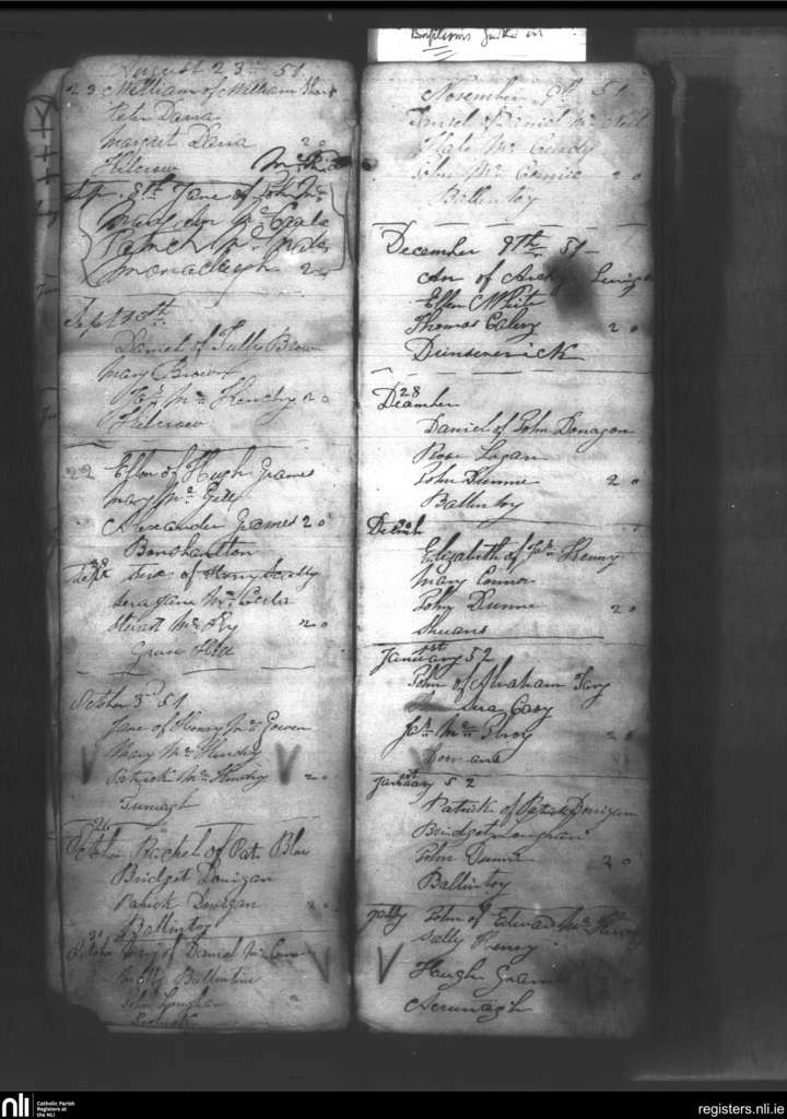 Armoy; County of Antrim; Diocese of Down and Connor. Baptisms, Aug. 1851 to Jan. 1852