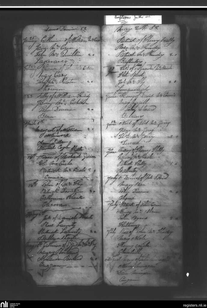 Armoy; County of Antrim; Diocese of Down and Connor. Baptisms, Jan. 1852 to Aug. 1852