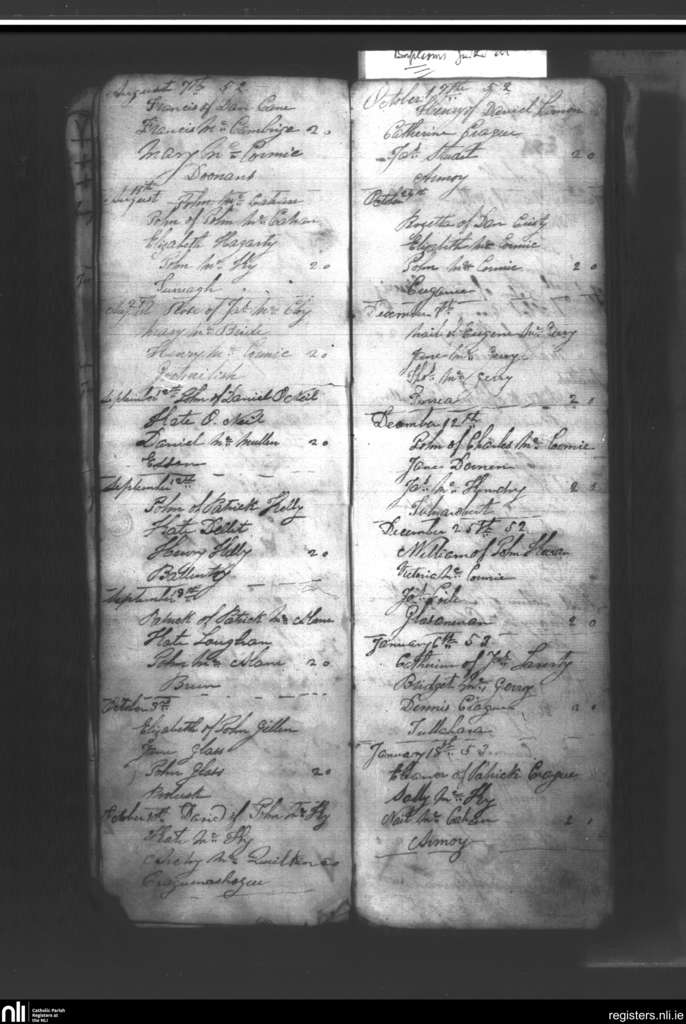 Armoy; County of Antrim; Diocese of Down and Connor. Baptisms, Aug. 1852 to Jan. 1853