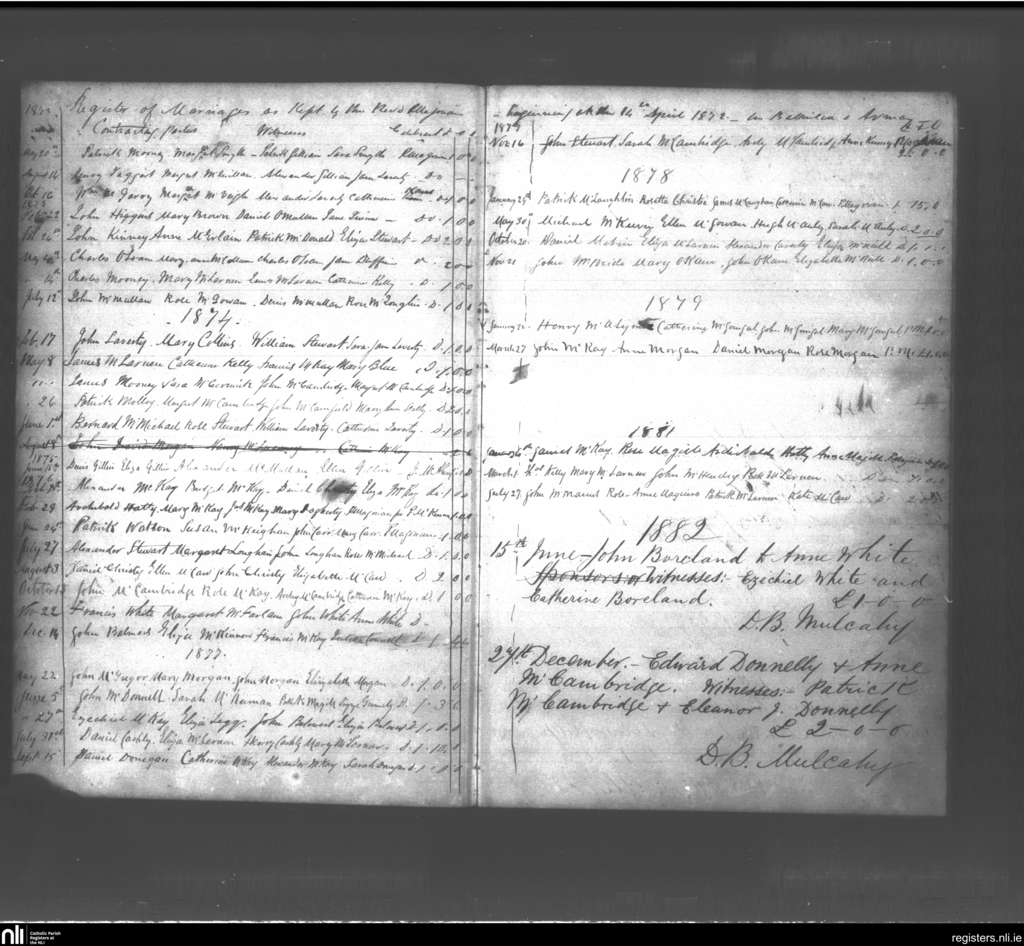 Ballintoy; County of Antrim; Diocese of Down and Connor. Marriages, May 1872 to Dec. 1882