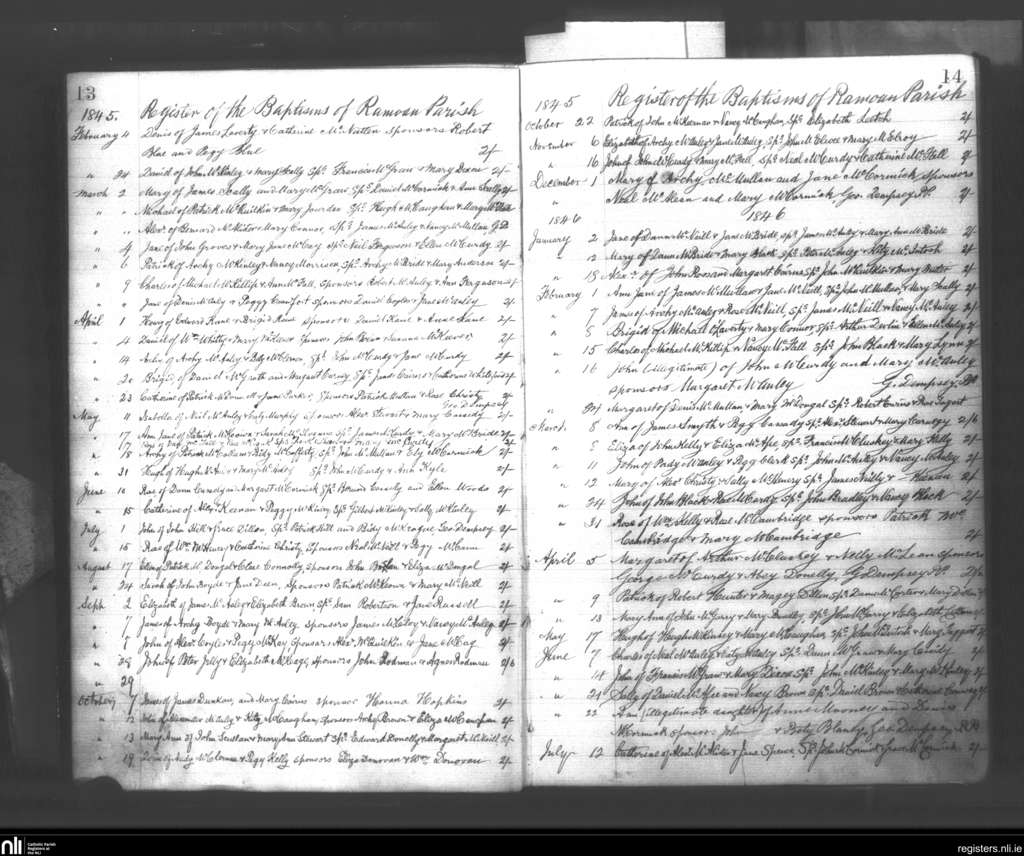 Ramoan; County of Antrim; Diocese of Down and Connor. Baptisms, Feb. 1845 to July 1846