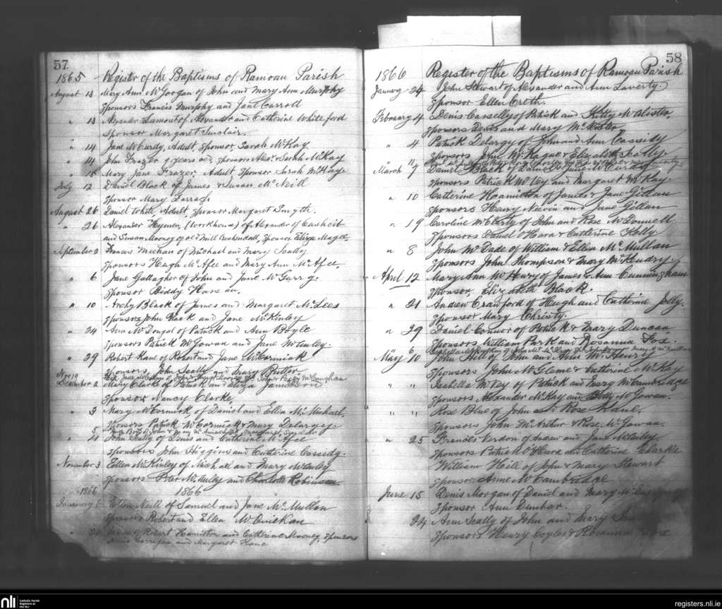 Ramoan; County of Antrim; Diocese of Down and Connor. Baptisms, July 1865 to June 1866