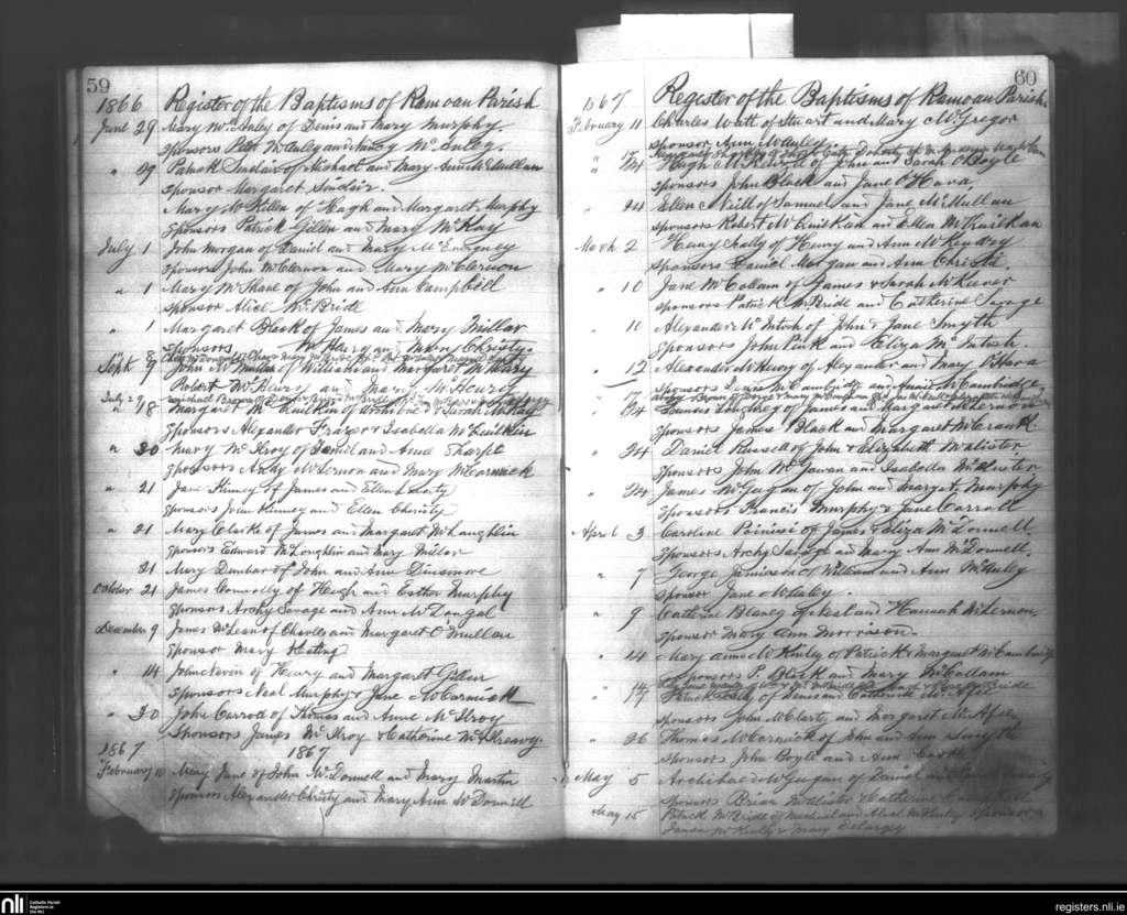 Ramoan; County of Antrim; Diocese of Down and Connor. Baptisms, June 1866 to May 1867