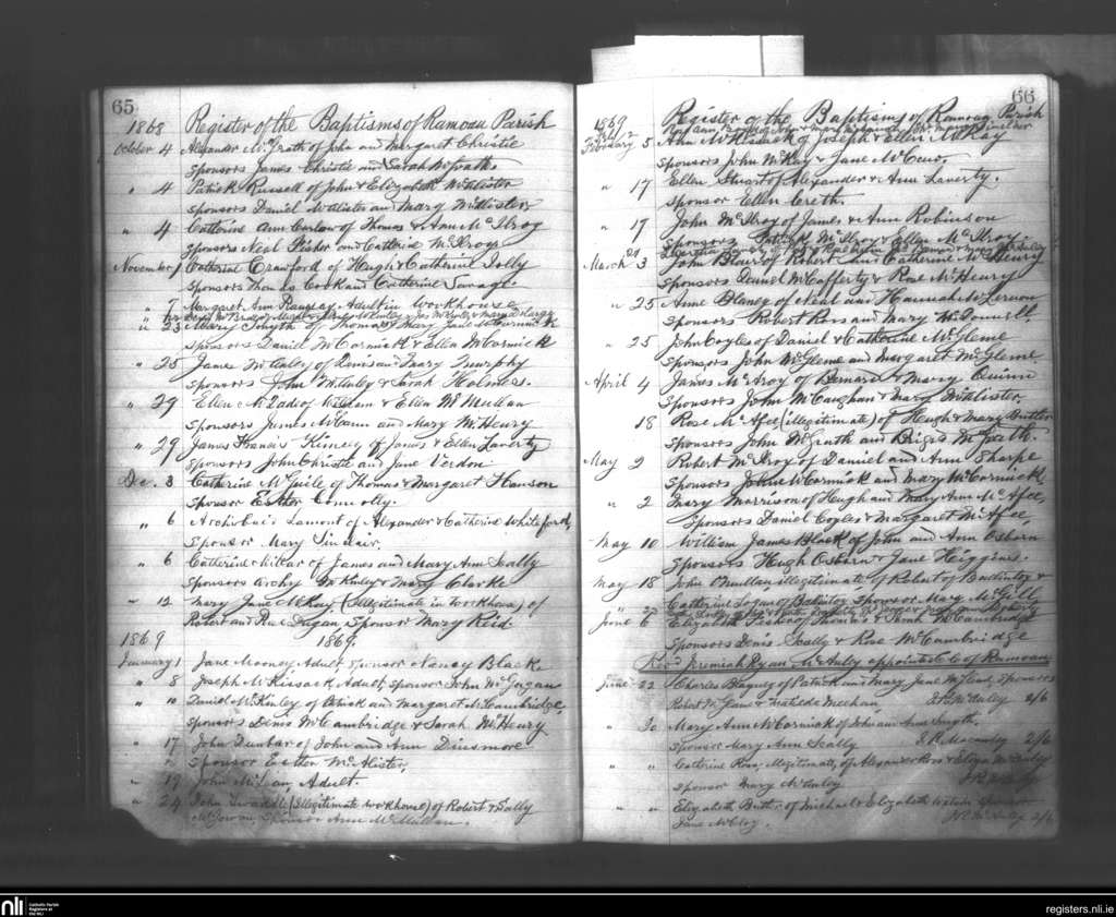 Ramoan; County of Antrim; Diocese of Down and Connor. Baptisms, Oct. 1868 to June 1869