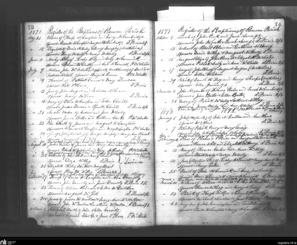 Ramoan; County of Antrim; Diocese of Down and Connor. Baptisms, May 1871 to Mar. 1872