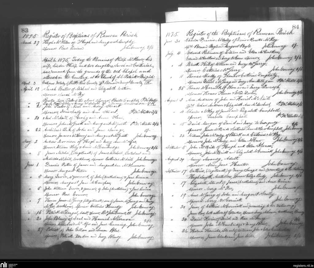 Ramoan; County of Antrim; Diocese of Down and Connor. Baptisms, Mar. 1875 to Sep. 1875