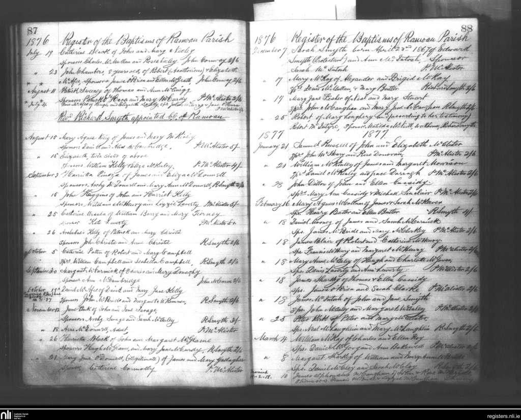 Ramoan; County of Antrim; Diocese of Down and Connor. Baptisms, July 1876 to Mar. 1877