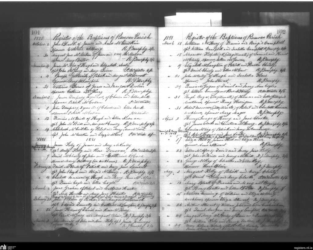 Ramoan; County of Antrim; Diocese of Down and Connor. Baptisms, Oct. 1880 to May 1881