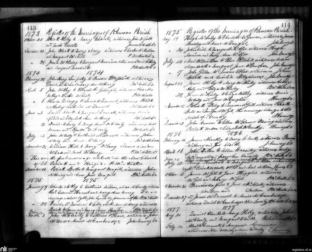 Ramoan; County of Antrim; Diocese of Down and Connor. Marriages, Oct. 1873 to July 1877