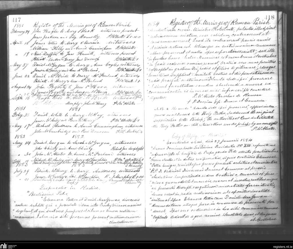Ramoan; County of Antrim; Diocese of Down and Connor. Marriages, Feb. 1880 to July 1883
