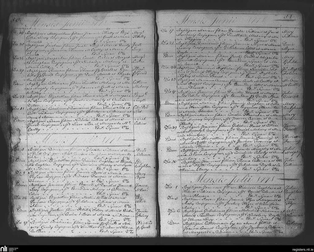 Ss Peter and Paul's, Cork city; County of Cork; Diocese of Cork and Ross. Baptisms, June 1771 to July 1771