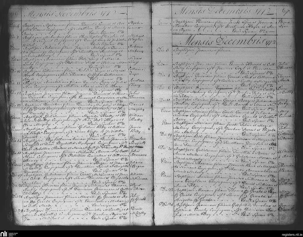 Ss Peter and Paul's, Cork city; County of Cork; Diocese of Cork and Ross. Baptisms, Nov. 1772 to Dec. 1772